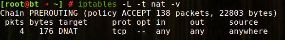iptables -t nat -A PREROUTING -p tcp --dport -j DNAT --to