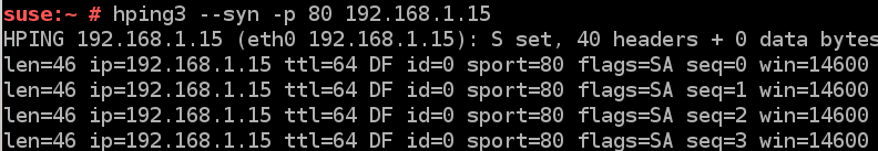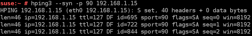 At this point the only thing left is running some service on the destination host and test with nmap that the port is open, then we can proceed to see how we can tell the forwarded port from a local service. For this we will use hping with the –syn option to send a packet with the SYN bit set and -p to indicate our target port (in our case this will an open port on the firewall). We will observe the different header values we get in the response (TTP, ID, and window size), these will give away the forwarded port.